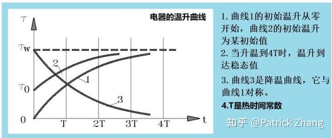 掌控器家用电器的温升有很多内容,包括升温曲线和降温曲线,还有热时间常数 T 等等,见右图: