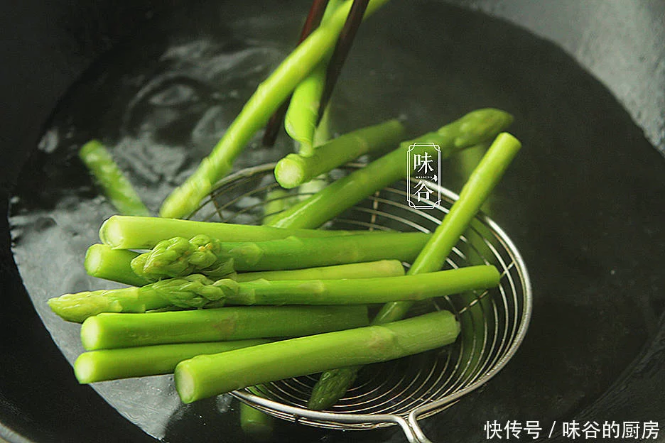 【作法】:1、芦笋洗干净,切去表皮老梗,然后切段,烧开水,放点盐和油,将芦笋焯3分钟左右,焯好后捞出芦笋在凉水里过一下,捞出;