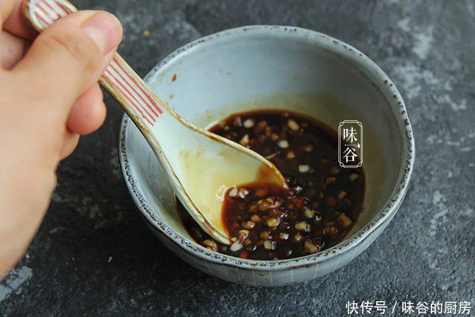 2、调酱料,蒜蓉放进小碗里,重新加入佐料、黑豆、白砂糖搅拌光滑,可以根据自己的口味酌情调整。