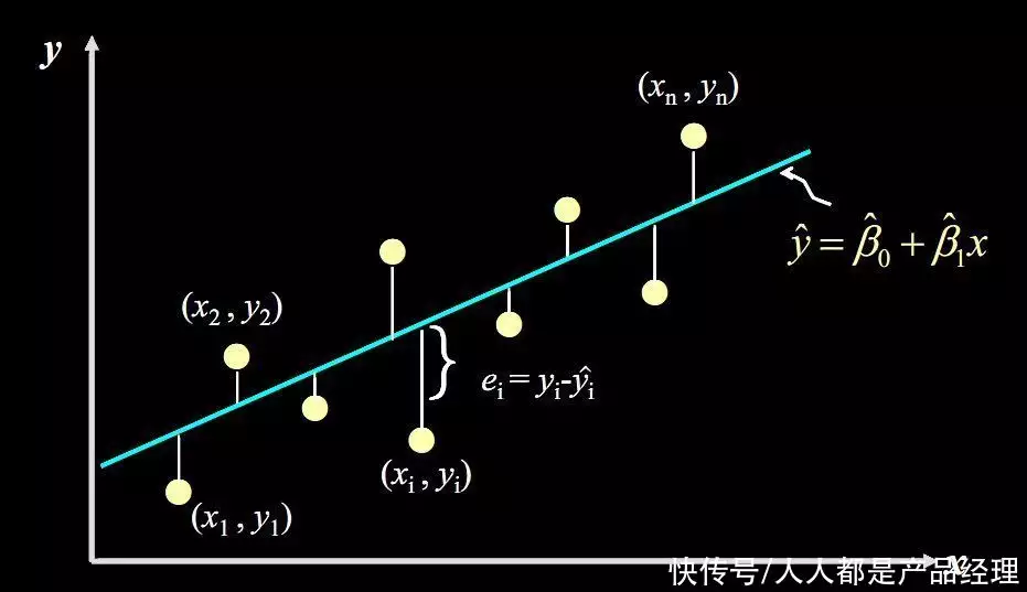 再把每一个点做平方后的累加合,这样就可以完全的量化出来你和曲线上直线相关联的点和实际值之间的误差距离,用公式表示如下: