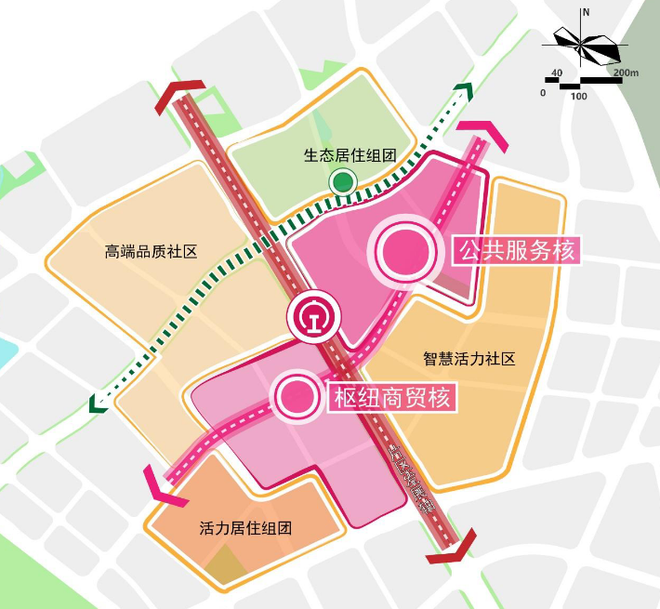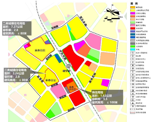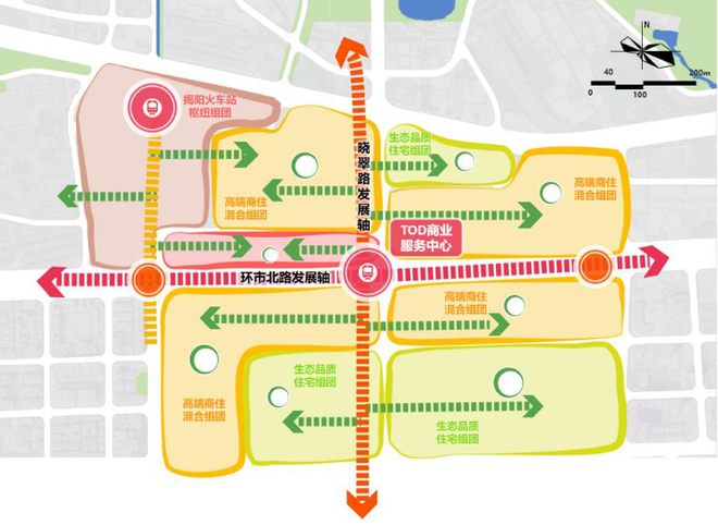 总体规划定位:紧密结合岐宁站建设,打造榕城北片区公共服务服务中心,综合居住服务中心。