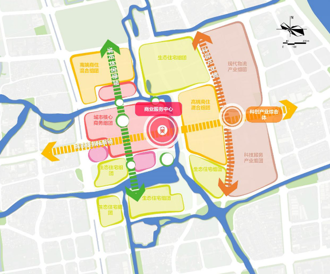 总体规划方案:总体规划打造与空铁密切相关的配套产业集聚区。