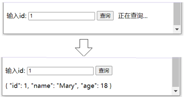 < template> < div> < p>输入id: < inputv-model= “id”/> < button@ click= “getCustomer”> 查询 </ button> {{msg}} </ p> < p> {{customer}} </ p> </ div></ template> < > import{mapState} fromvuexexportdefault{ data{ return{ id: }}, computed: mapState([ customer,msg]), methods: { getCustomer{this.$store.dispatch( loadCustomerAction, this.id).then( => { console.log( this.customer)} )}}}</ >在src/router/index.js中,为AsyncCustomer模块设置的路由的路径为cust。通过浏览器访问http://localhost:8080/#/cust,会出现如图2所示的网页。在网页上的id输入框输入1,再单击“查询”按钮,会看到网页先显示“正在查询…”,延迟一段时间后,再显示id为1的customer对象的信息。