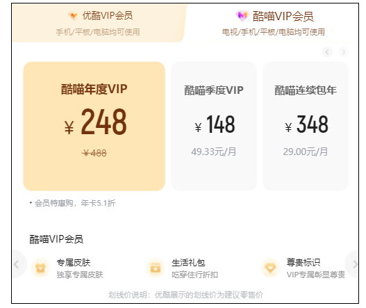 爱网易RIAA VIP 年费 388 元(已连续包年 198 元),腾讯音频超级影视 VIP 年费488 元(已连续包年 348 元),土豆网酷喵团体会员年费 488 元(已连续包年 348 元)。