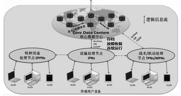 2011 年,美军提出和实施了联合信息环境(Joint Information Environment,JIE),标志着信息化建设重心从“以网络为中心”转变为“以数据为中心”。JIE 的建设目标为统一数据,通过建立核心数据中心,将重要信息汇总作为共用资源提供给美军各军和各级机构。