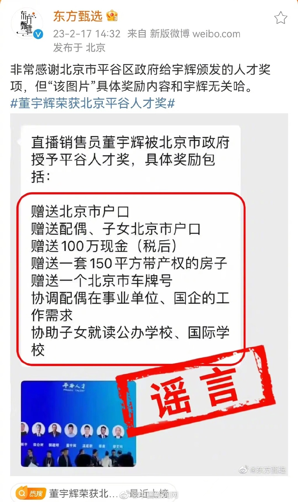 随后,董宇辉也发文澄清: