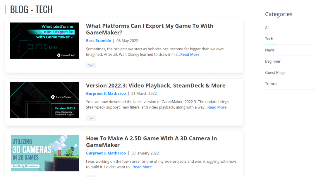 上边介绍的每个教程都配以教学视频,笔者和亚洲地区的几个爸爸妈妈也有幸参与了亚洲地区的新手教程制做,如《救火员》的中文版本重置、GML入门教程《200行代码实现俄罗斯方块》等。不过,非官方教程主要是英文为主,最原始的视频需要在油管上观看,在亚洲地区只能在B站看搬运的视频。