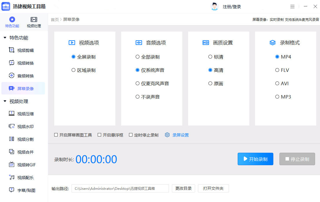 4. 屏幕录像:全力支持多种不同录制模式,主要包括全屏录制、区域录制。