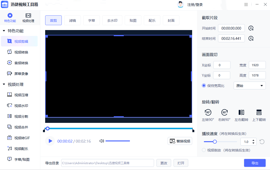3. 提供更多了多种不同音视频剪接机能,能采用这些机能来撰稿音视频,如上色、旋转、音视频倒放等。