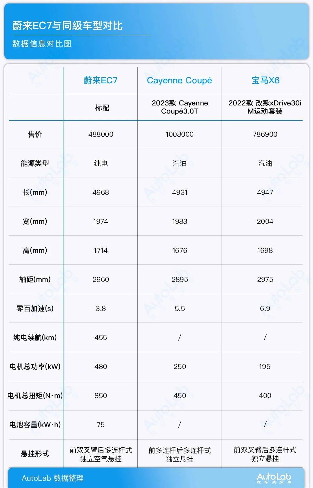 再来看一看蔚来EC7与另外三款车款的对比,这样一看这款车的轴长比似乎不够出色: