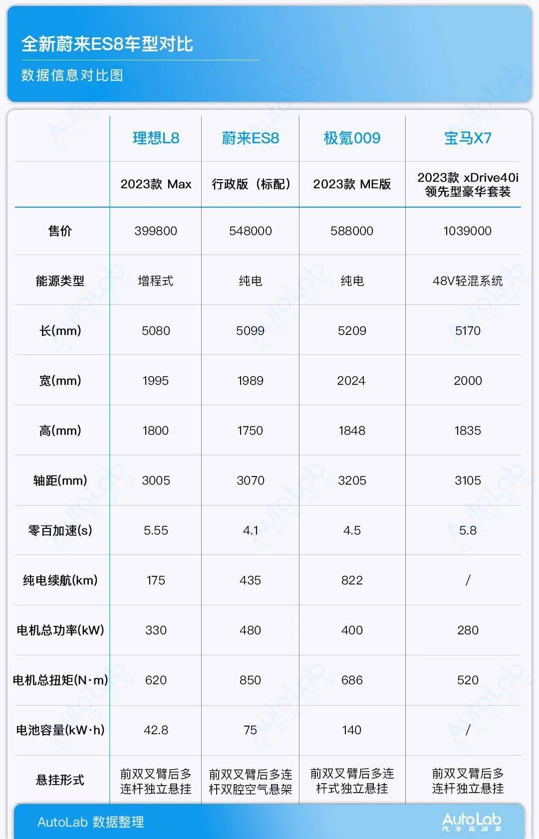 崭新ES8不论外形还是内饰,都有商务化的考量,从某些角度上看,它会给你是一辆mpv的印象。因此小贴士也选取了一款纯电mpv车款参与了重要信息对比。