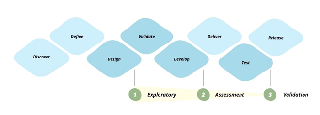首先我们需要了解,易用性试验不是只需展开一次,理想的结构设计业务流程中会在不同期展开多次试验,而不同期的探索对象和最终目标也是不完全一致的。