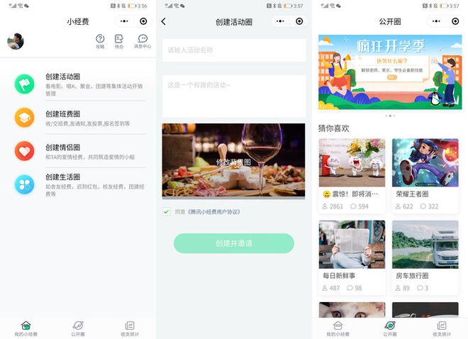 在活动举行之前发起活动,然后邀请好友加入即可。让“谈钱不伤感情”,让聚会更加轻松。此外,还有校园圈、情侣圈设置,收款记账全部一目了然。