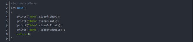 ·当sizeof(与数据类型(如int,float,char …等)一同使用时,返回分配给该数据类型的内存量。