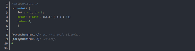 ·当sizeof和表达式一同使用的时候,返回表达式的大小。