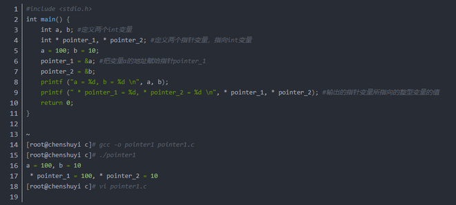 定义:基类型 * 指针变量名;例1:通过指针变量访问整型变量