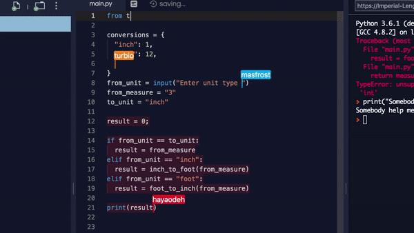 我觉得这可以称得上repl.it的一大杀器,它支持多人协作开发。