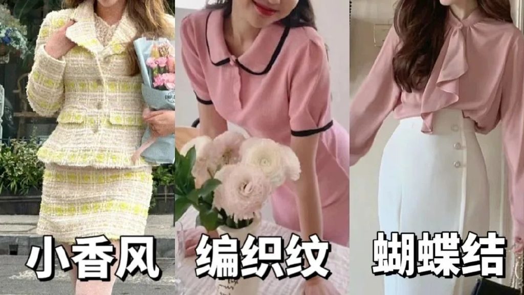 另外温柔甜美风会有很多精巧的小元素,比如说小香风、编织纹理、垂坠感蝴蝶结等,这也是她和极简风的相同。