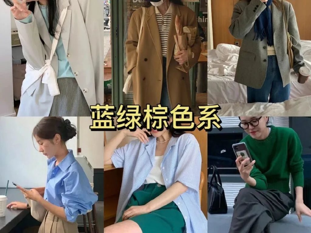 📌常用的配色:以【中性色】为主,卡其色、米色、浅蓝色、灰绿色最为常见。