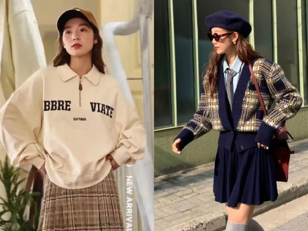 👉复古学院风: