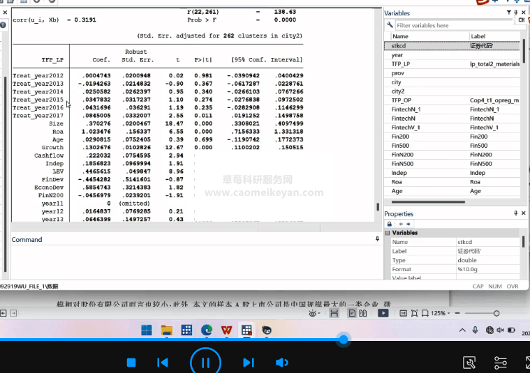 11、金融技术创新信息技术与民营企业全基本要素劳动生产率影响基本回归数据运转及结果导出,包括设置面板数据、固定效应、聚类城市层面等