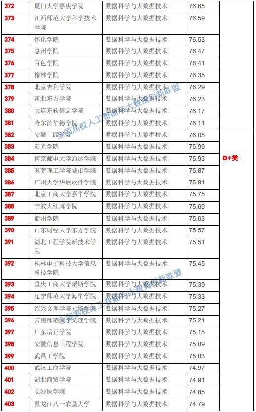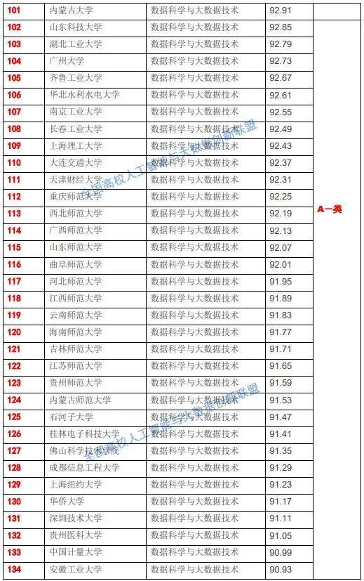 “A类”表示统计数据自然科学与大统计数据控制技术专精基础教育课堂教学综合性整体实力整体水平位居全省院校之首。从排名情形来看,北京大学、中南大学、华东师范大学分别排在第一名、第二名和第三名。北京大学统计数据自然科学与大统计数据控制技术专精于2015年登记,同年秋季学期开始招收国内第一批本科生。在元培学院,数学自然科学学院,信息自然科学与技术学院分别展开招生。2018年7月第一批统计数据自然科学专精的本科生已毕业。北京大学依托数学、统计学、计算机自然科学、软件、公共卫生与预防医学、心史学、社会风气学、金融学等学科于2015增设了统计数据自然科学与大统计数据控制技术交叉学科专精,并依托前沿交叉学科研究院成立了大统计数据自然科学研究中心。北京大统计数据自然科学研究中心将更好地整合校内统计数据自然科学的研究力量,依托北大优势学科资源,工程建设统计数据自然科学交叉学科,探索统计数据自然科学高层次科研模式。北京大学依托前沿交叉学科研究院,联合多个院系,完成通过了自主增设大统计数据自然科学交叉学科的论证方案。北大成为国内首个具有特色交叉学科“统计数据自然科学”博士和硕士授与点单位;中南大学统计数据自然科学与大统计数据控制技术专精是国内第一批获国家批准设立的三个院校之一,建有完善的大统计数据专精课堂教学平台,依托医疗大统计数据应用控制技术国家工程生物医学、湖南省医学大统计数据协同创新中心、中南大学湘雅大统计数据科研平台、轨道交通大统计数据科研平台、有色金属工业领域大统计数据科研团队力量实施科研,并与知名IT公司建有校企专业人才合作培育培训基地。核心专业课程主要包括统计数据自然科学与大统计数据导论、分布式系统与云计算、机器学习、深度学习、统计数据仓库与统计数据挖掘、可视化控制技术、大统计数据编程等;华东师范大学统计数据自然科学与大统计数据控制技术专精致力于培育具有设计思维和统计数据思维的“系统架构师”与“统计数据自然科学家”。培育学生掌握统计数据自然科学全生命周期,主要包括统计数据收集、统计数据加工(审计、清洗、转换、集成、脱敏、归约和标注)、统计数据管理(存储、探索性分析和可视化)、统计数据分析和统计数据应用所涉及的各种基础理论和工具。在培育方式上,学院探索形成本、硕、博一体化的课堂教学体系。在本科阶段以培育统计数据思维、设计思维,点燃统计数据自然科学与工程学习兴趣,形成利用云计算平台和利用开源、回馈开源的潜能,养成动手实践习惯为主要目标。研究生阶段的培育则通过理论学习,科研实践,国内外前沿动态考察等多种手段,形成多层次、全方位的训练。学院招收博士、长学制学术型硕士和专精工程硕士,并对其展开差异化和个性化培育。学院的研究生教学模式,既体现国内外学术和控制技术产业发展趋势和社会风气产业发展需求,也反映学院师资队伍团队的研究兴趣和特色。“A类”其他院校还主要包括中国自然科学控制技术大学、对外经济贸易大学、上海交通大学、复旦大学、北京理工大学、中国农业大学、电子科技大学、中国人民大学、北京师范大学、吉林大学、同济大学、厦门大学、哈尔滨工业大学、华南理工大学、华中科技大学、西北工业大学、天津大学、西安电子科技大学、重庆大学、湖南大学、山东大学、武汉大学、中国海洋大学、南开大学、云南大学、北京邮电大学、北京化工大学、兰州大学、中国石油大学(北京)、中国地质大学(北京)、中国石油大学(华东)、南京理工大学、中国传媒大学、合肥工业大学、太原理工大学、东北大学、重庆邮电大学、中国地质大学(武汉)、中央民族大学、武汉理工大学、四川农业大学、南京邮电大学、中南财经政法大学、西南财经大学、华中农业大学、华中师范大学、上海工程控制技术大学等全省136所院校。