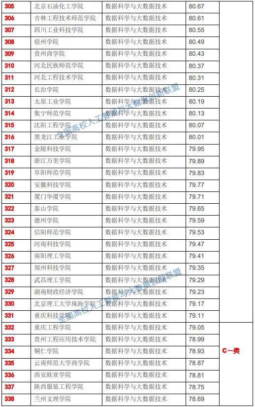 “C类”表示统计数据自然科学与大统计数据控制技术专精基础教育课堂教学综合性整体实力整体水平位居全省院校第三,主要包括三峡大学、井冈山大学、济南大学、华北科技学院、北京物资学院、南京工程学院、河北金融学院、广西师范学院、东莞理化学科院、沈阳航空航天大学、沈阳师范大学、吉林外国语大学、广东医科大学、甘肃政法大学、燕京理化学科院、广东金融学院、重庆三峡学院、上海杉达学院、兴义民族师范学院、唐山学院、河南化学科院、浙江大学宁波理化学科院、新余学院、山东交通学院、吉林化化学科院、吉林建筑科技学院、盐城化学科院、江西服装学院、齐鲁师范学院、郑州工商学院等全省135所院校。