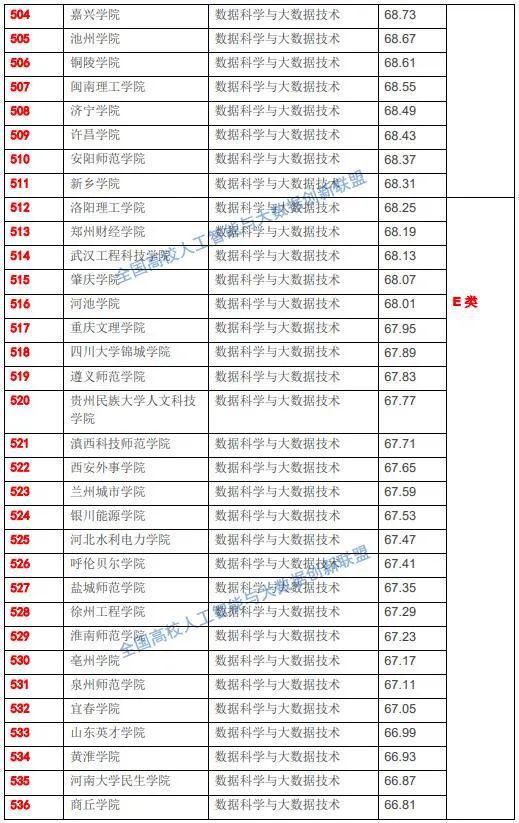 “E类”表示统计数据自然科学与大统计数据控制技术专精基础教育课堂教学综合性整体实力整体水平位居全省第五,主要包括大连科技学院、白城师范学院、上海杉达学院、常州化学科院、菏泽学院、平顶山学院、黄冈师范学院、宜宾学院、湖南涉外经济学院、广东石油化化学科院、湖南警察学院、防灾科技学院、贵阳学院、福建工程学院、北京城市学院、福建商学院、忻州师范学院、运城学院、山西工程控制技术学院、呼和浩特民族学院、吉林动画学院、上海电机学院、南京师范大学中北学院、嘉兴学院、池州学院、铜陵学院、闽南理化学科院、济宁学院、许昌学院、安阳师范学院、新乡学院等全省100所院校。
