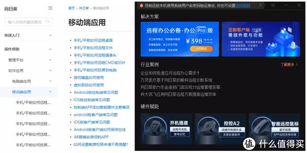 向日葵的信息及机能很多样,在智能手机端及笔记本电脑端的介面中都有推广硬件的位置,不时会有弹窗提示查看新推机能或硬件产品。对新手用户,也有教学中心能对不明白的操作方式自查如果采用,操作方式步骤均很细致,基本各种会遇到的采用问题都有涵盖,产品设计的细致贴心程度非常高。
