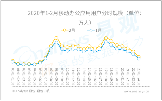 2020年1-2月移动办公应用用户分时规模