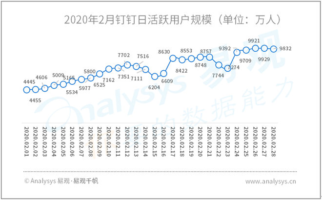2020年2月钉钉日活跃用户规模