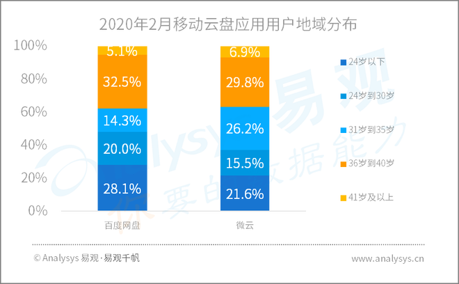 从用户结构来看,个人网盘用户群体包括学生和职场新鲜人(24岁以下用户占比达到28.1%),该群体是目前移动互联网上的主流群体之一,具有巨大的增长潜力。