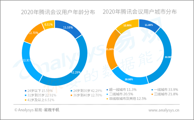 2020年腾讯会议用户年龄分布&城市分布