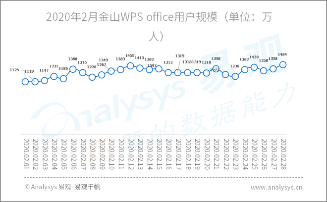2020年2月金山WPS office用户规模