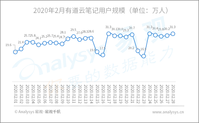2020年2月有道云笔记用户规模