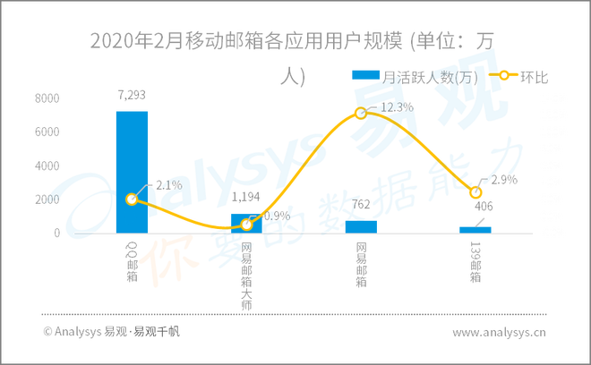 2020年2月移动邮箱各应用用户规模