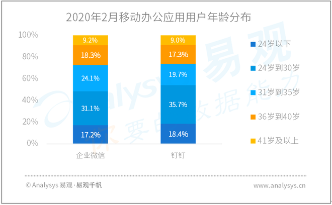 2020年2月移动办公应用用户年龄分布