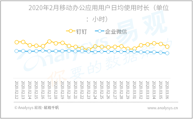 2020年2月移动办公应用用户日均使用时长