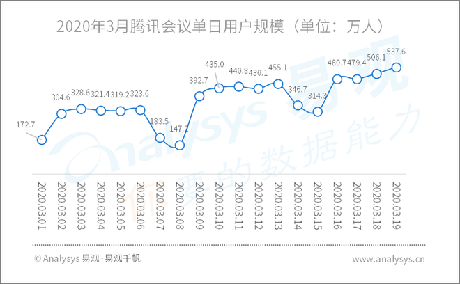 2020年3月腾讯会议单日用户规模