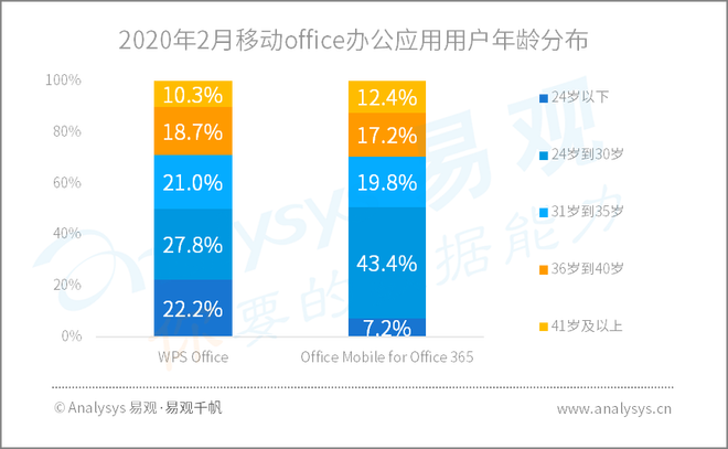 2020年2月移动office办公应用用户年龄分布