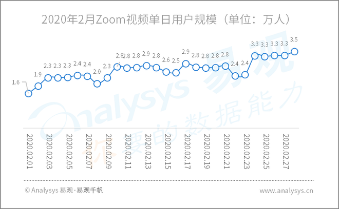 来自硅谷的视频会议公司Zoom因性能“流畅、稳定、丰富的协同功能、多样的订阅及部署方式”在疫情期间揽获不小的增量,Zoom用户增长显著,2月底Zoom用户日活达到3.4万人,环比月初增长超过2倍。