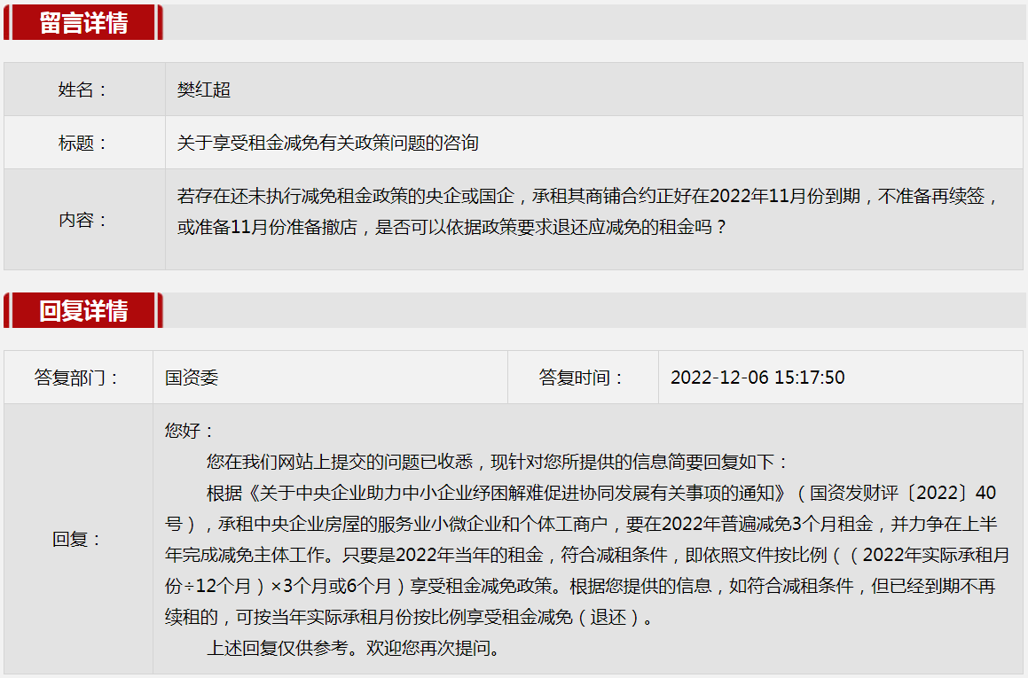 2.相关享用房租免收相关经济政策难题的进行咨询。