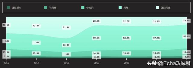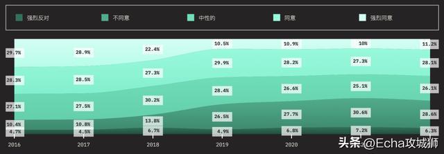 JavaScript 正朝着正确的方向发展?可以看到,近几年每种意见都趋于稳定,超过76%的用户认同JavaScript正在朝着正确的方向发展。