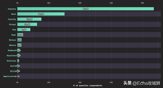 常用的后端框架中,Express 领先于其他库,超过87%的用户使用 Express。