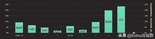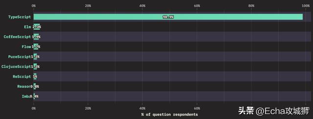 常用的 JavaScript 风格中,使用最多的就是 TypeScript。近 99% 的受访者使用 TypeScript: