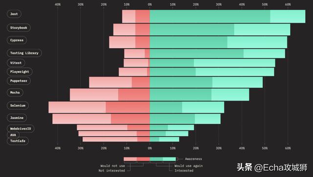 下面来看看随着时间的推移,热门测试工具的保留率、兴趣率、使用率和认知率。