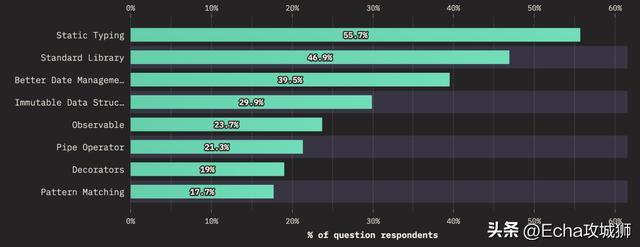 2022 年 JS 状态调查于 2022 年 11 月 21 日至 12 月 22 日进行,共收集了 39472 份问卷。此调查的目的是确定 Web 开发生态系统中即将出现的趋势,以帮助开发人员做出技术选择。因此,该调查的重点是预测未来几年会发生什么,而不是分析现在流行什么,这就是为什么并不包括目前最普遍的功能或技术。功能JavaScript 发展很快,但似乎 JavaScript 开发人员的发展速度更快,因为许多相对较新的功能已经显示出很高的采用率。