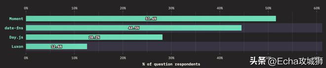 常用的时间处理库中,超过一半的用户使用 Moment,data-fns 紧随其后。