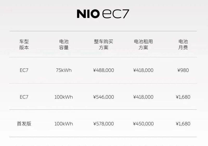 当中,EC7提供更多75kWh和100kWh两种耗电量可选,配有75kWh电池包的车款起单价为48.8多万元;配有100kWh电池包的车款起单价为54.6多万元;此外,非官方还面世了BaaS计划,起单价为418,000元。从即日起,使用者可在蔚来APP预约,新车款预计今年将在2023年5月迈入交货。