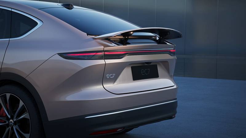 蔚来EC7是蔚来崭新结构设计的中大型旗舰级轿跑SUV。新车款外形轮廓结构设计简约典雅,底盘长4968公厘,宽1974公厘,高1714公厘,TNUMBERmm2960公厘。新车款提供更多8种底盘色调,当中包含这款2023年崭新年度色——黎明金。值得一提,新车款前部首次选用主动开闭主翼,既刻画了EC7听觉上的现代感,也提高了轻量化的空气动力操控性,主翼提供更多广舅、全速两个挡位,分别提供更多广舅和提高下压力的功能。新车款空气阻力常数pulchre0.230Cd。同时新车款顶端选用了面积达1.94平方米的智能显像实景霓虹地板,第一次在新型材料变黑霓虹地板中选用鞘花温和红蓝白,第二代场效应新型材料变技术(EC)提供更多5档照度控制。新车款配有了⼤尺⼨轮包,可选22⼨磨砂角蕨轮毂及六喷嘴⾼操控性Brembo。